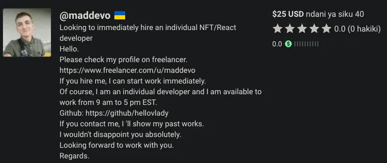 Most of Aiden's accounts appear to have been terminated or deleted since infection, though remnants of them still remain, as seen above. "Maddevo" was seen responding to hiring posts on a freelancer website for NFT and web design projects between 2022-2023. Another persona, that still appears to be active, led to a Blockchain developer who lists work experience as a founding team member of a fairly large crypto-backed job marketplace, a blockchain project focused on legal compliance, and a cryptocurrency investing platform. Their contact information included two different Skype VOIP numbers and a LinkedIn account which appears to have been terminated. One Github account found in the stealer logs, that initially appeared deleted, was found to be synced to a third-party website that led us to discover another active persona not found in the logs. This persona had a much larger online footprint and clearly put much more effort into appearing legitimate.