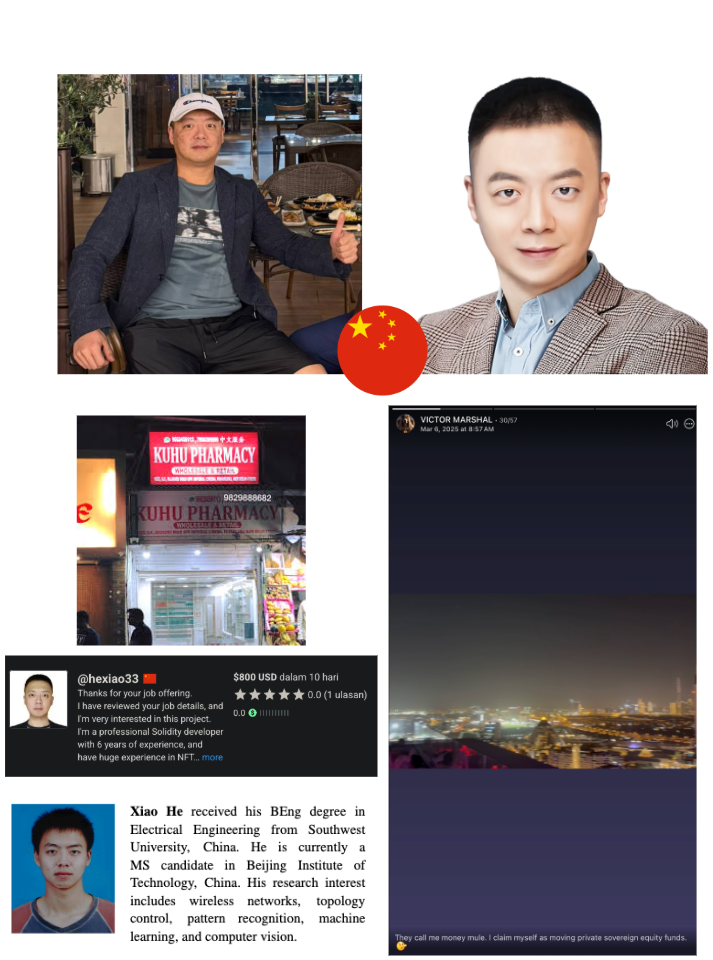 Perhaps the most interesting member of this group was not North Korean at all, but a Chinese national using the handle wildwolf085 who appears to be directly working with the group. Although his real name is Xiao He, he most often uses the handle komonado or the name "Victor Marshal". In relation to his BABYLONGROUP connection, Xiao He has primarily worked on the projects DeamChain and FWork.io, both of which are web3 projects aimed at the freelancer market. Outside of his relationship to BABYLONGROUP, Xiao He is also an administrator of the Chinese cybercrime marketplace FreeCity Market under his handle "Komonado"(src), a crypto OTC/P2P broker who has had accounts shut down due to accusations of being affiliated with the DPRK, and is the purported owner of an Indian company called Kuhu Pharmacy that is involved in selling fake viagra and chinese herbal medicines on Telegram.