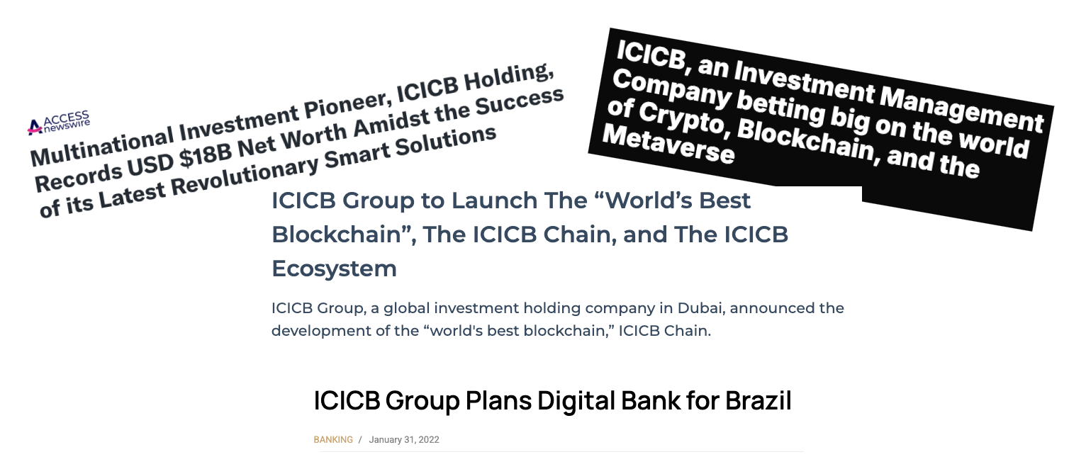 Between 2020 and 2022 we discovered a plethora of very ambitious headlines discussing a Dubai based investment holding company called ICICB. Although we were unable to find anything new on the company, several articles stated that they were valued at $18 billion in February 2022 and had 114 offices in 26 different countries (or 220 offices in 110 countries, or 220 offices in 126 countries. It depends on which article you choose).