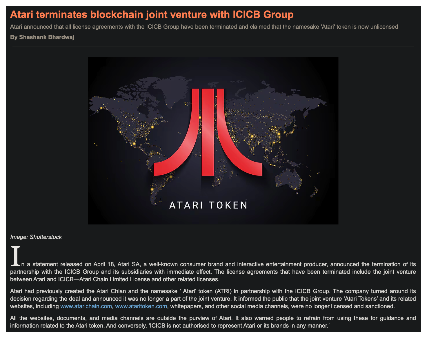 ICICB's claim to fame was their joint venture with ATARI on a multitude of interesting projects including, but not limited to: a blockchain called AtariChain, a metaverse game, AtariToken, and a collection of Atari-themed hotels that would be built in Dubai, Gibraltar, and Spain. This collaboration was surrounded by huge amounts of hype and marketing that resulted in both of the companies logos being projected onto the Burj Khalifa, an AtariChain Bugatti, billboards, ICICB winning a Tech Innovation Award, and plenty more:
